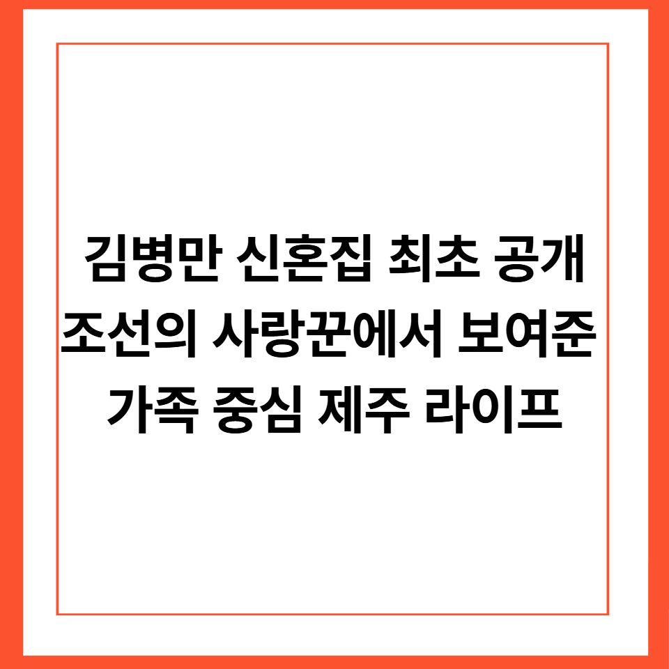 개그맨 김병만이 2025년 9월 8일 방송되는 **TV조선 예능 프로그램 ‘조선의 사랑꾼’**에서 제주 신혼집을 최초로 공개합니다.
