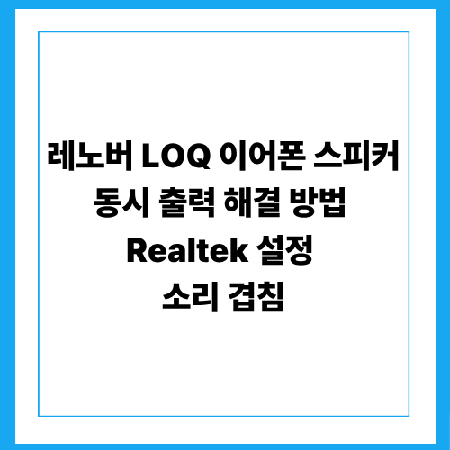레노버 LOQ 이어폰 스피커 동시 출력 해결 방법 | Realtek 설정 | 소리 겹침