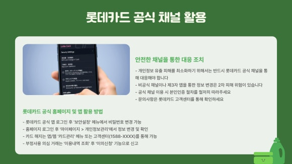 👉 비밀번호 변경 및 카드 해지는 롯데카드 공식 홈페이지 또는 앱에서 간편하게 처리할 수 있습니다.