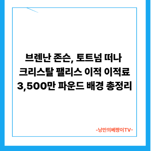 브렌난 존슨이 **토트넘 홋스퍼**를 떠나 **크리스탈 팰리스**로 이적한다. 이적료는 **3,500만 파운드(약 678억 원)**로 알려졌으며, 2026년 1월 2일 양 구단이 합의에 도달했고 메디컬 테스트가 끝나는 대로 공식 발표될 예정이다. 이번 거래는 손흥민의 LAFC 이적 이후 토트넘에서 성사된 첫 대형 선수 이동이라는 점에서 더욱 주목받고 있다.