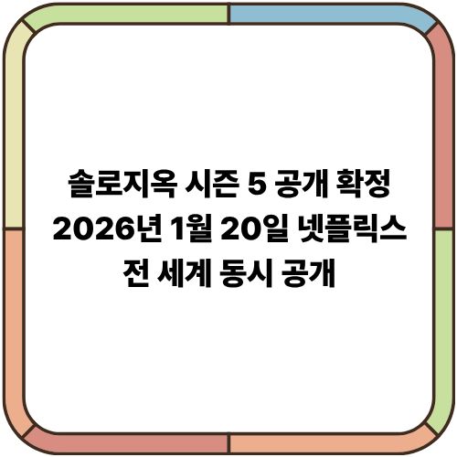 솔로지옥 시즌 5가 2026년 1월 20일(화), **넷플릭스**를 통해 전 세계 동시 공개됩니다. 이는 넷플릭스 한국 예능 최초의 시즌 5로, 데이팅 리얼리티 장르에서 이례적인 기록입니다.