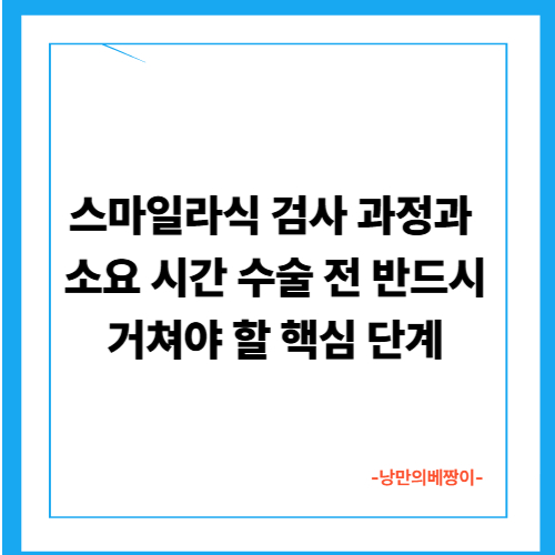 이 글에서는 스마일라식을 계획 중인 분들을 위해 검사 항목, 소요 시간, 주의사항, 그리고 검사 후 상담 내용까지 자세히 설명합니다.