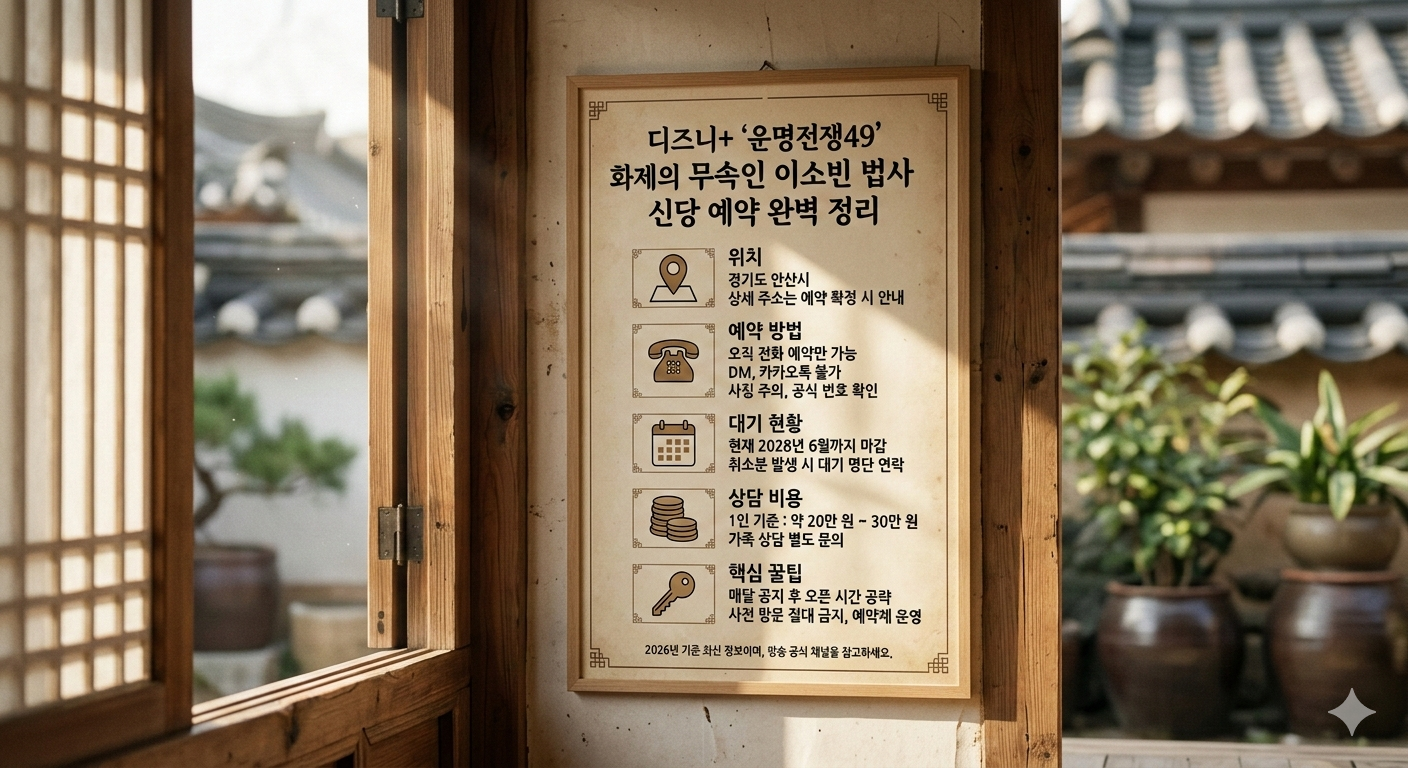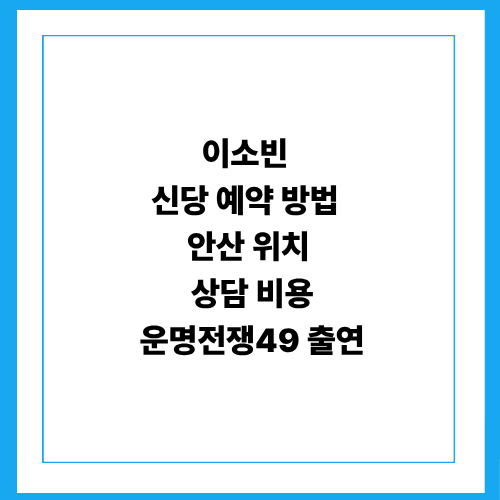 안녕하세요. 오늘은 디즈니+ 예능 '운명전쟁49'에서 소름 돋는 적중률로 화제가 된 이소빈 신당 예약에 대해 자세히 알아보겠습니다. 방송 이후 이소빈 신당 예약 문의가 폭발적으로 증가하면서 현재 대기 기간이 상당한데요. 확실한 이소빈 신당 예약 정보와 성공 꿀팁을 정리해 드립니다.