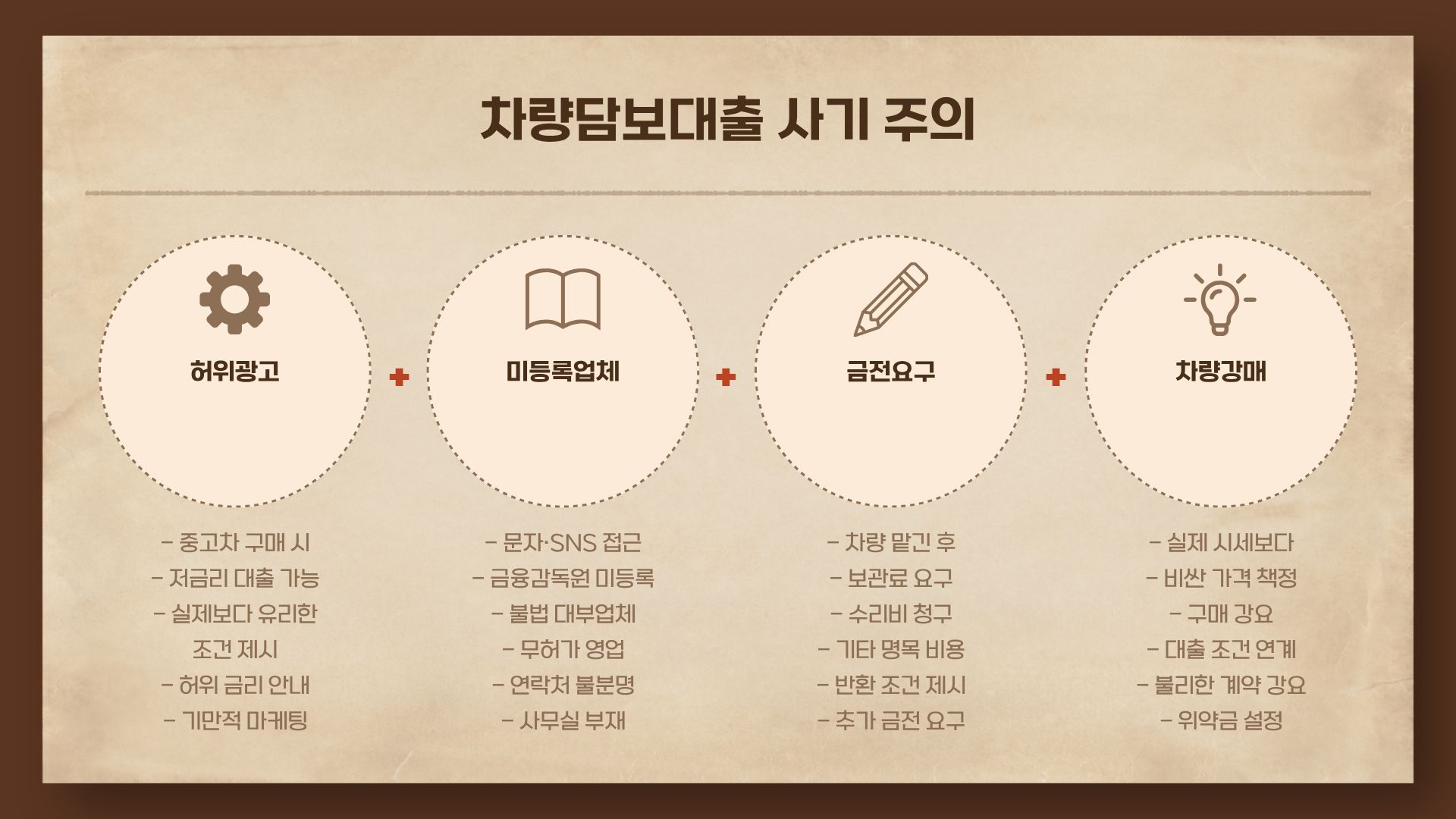 최근 ‘중고차 구매 시 저금리 대출 가능’ 등의 광고를 통해 사기를 유도하는 사례가 많습니다.