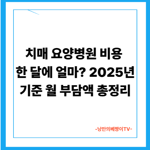 치매 요양병원 비용 한 달에 얼마? 2025년 기준 월 부담액 총정리
