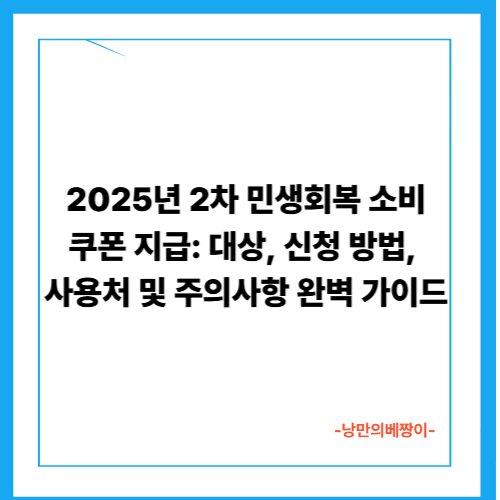 2025년 2차 민생회복 소비쿠폰 지급: 대상, 신청 방법, 사용처 및 주의사항 완벽 가이드