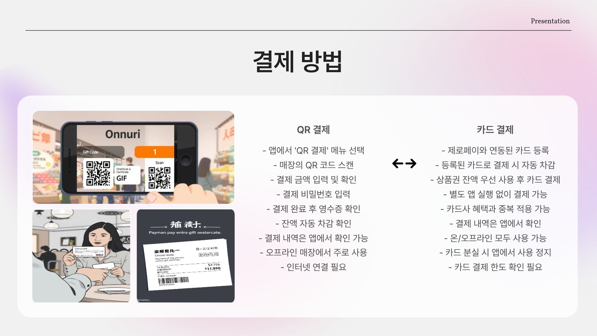 • 실물보다 편리하고 안전한 QR·카드 결제 가능