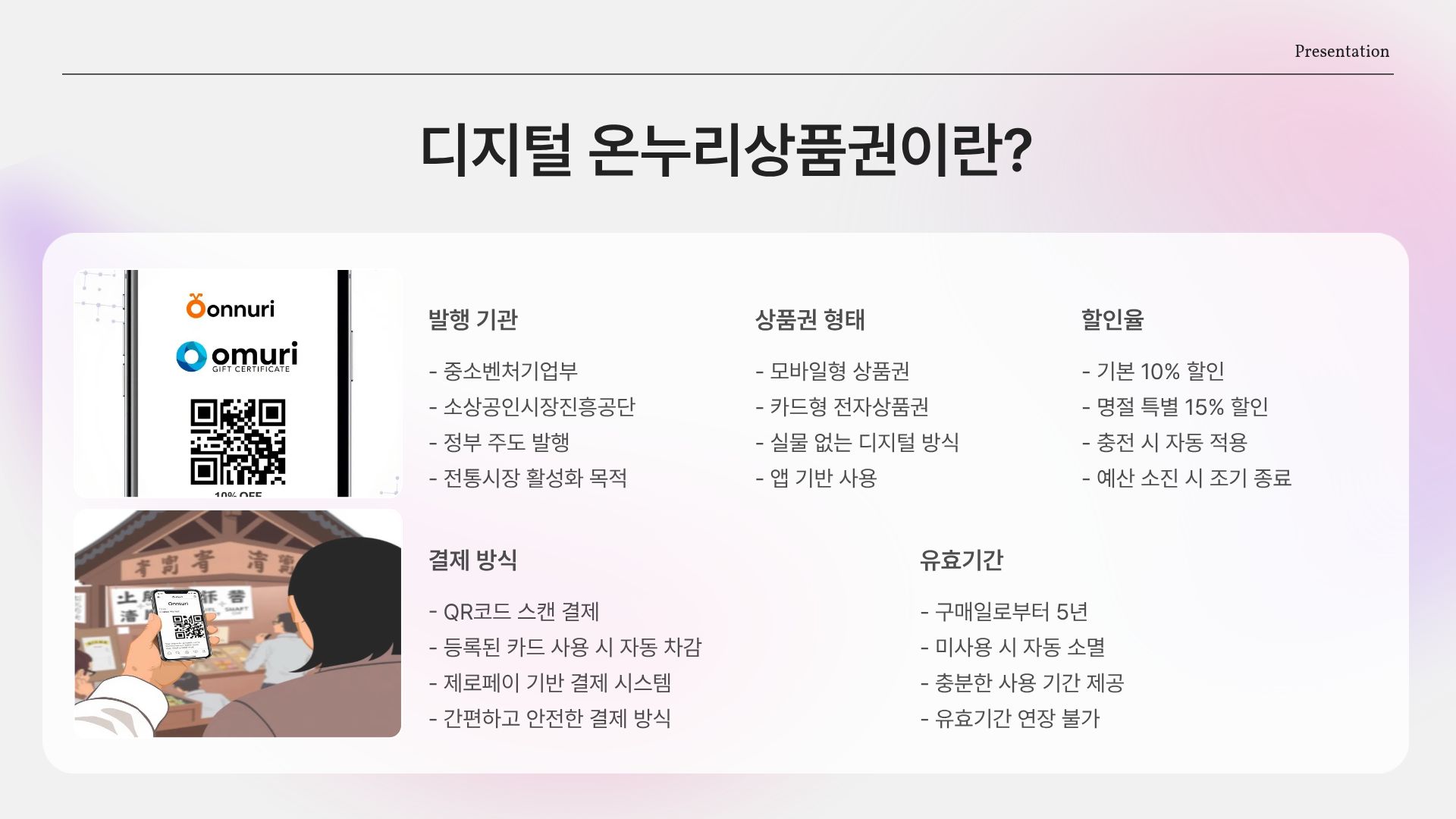 아래에서 디지털 온누리상품권의 사용 방법, 구매처, 혜택을 간단히 정리해드릴게요.