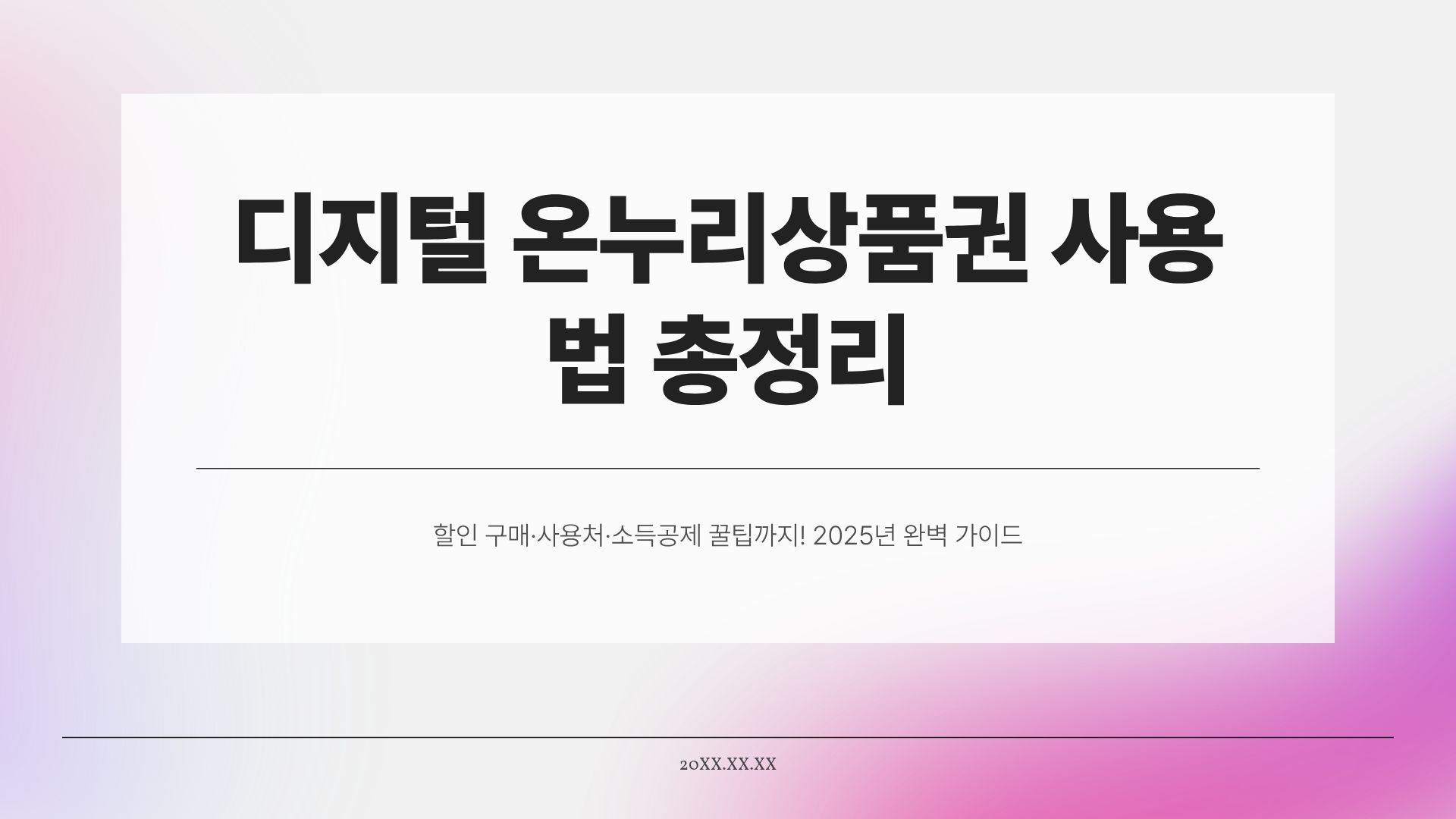 "2025 디지털 온누리상품권 사용법 총정리|할인 구매·사용처·소득공제 꿀팁까지!"