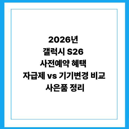2026년 갤럭시 S26 사전예약 혜택 | 자급제 vs 기기변경 비교 | 사은품 정리
