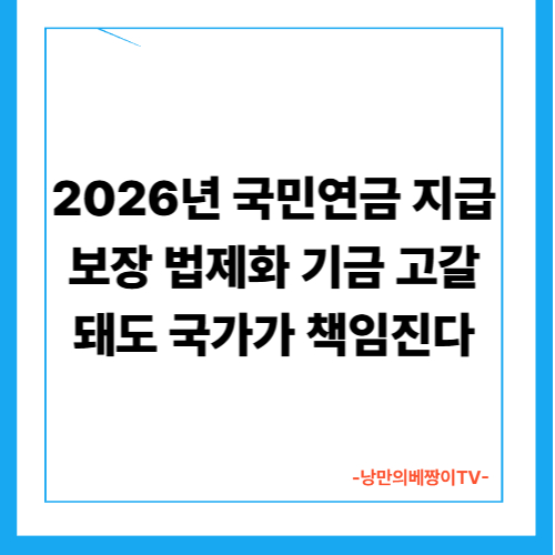 2026년 국민연금 지급보장 법제화|기금 고갈돼도 국가가 책임진다