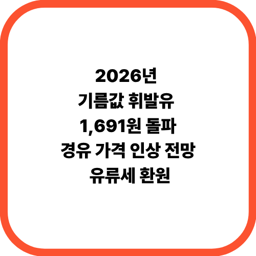 2026년 기름값 휘발유 1,691원 돌파 ❘ 경유 가격 인상 전망 ❘ 유류세 환원