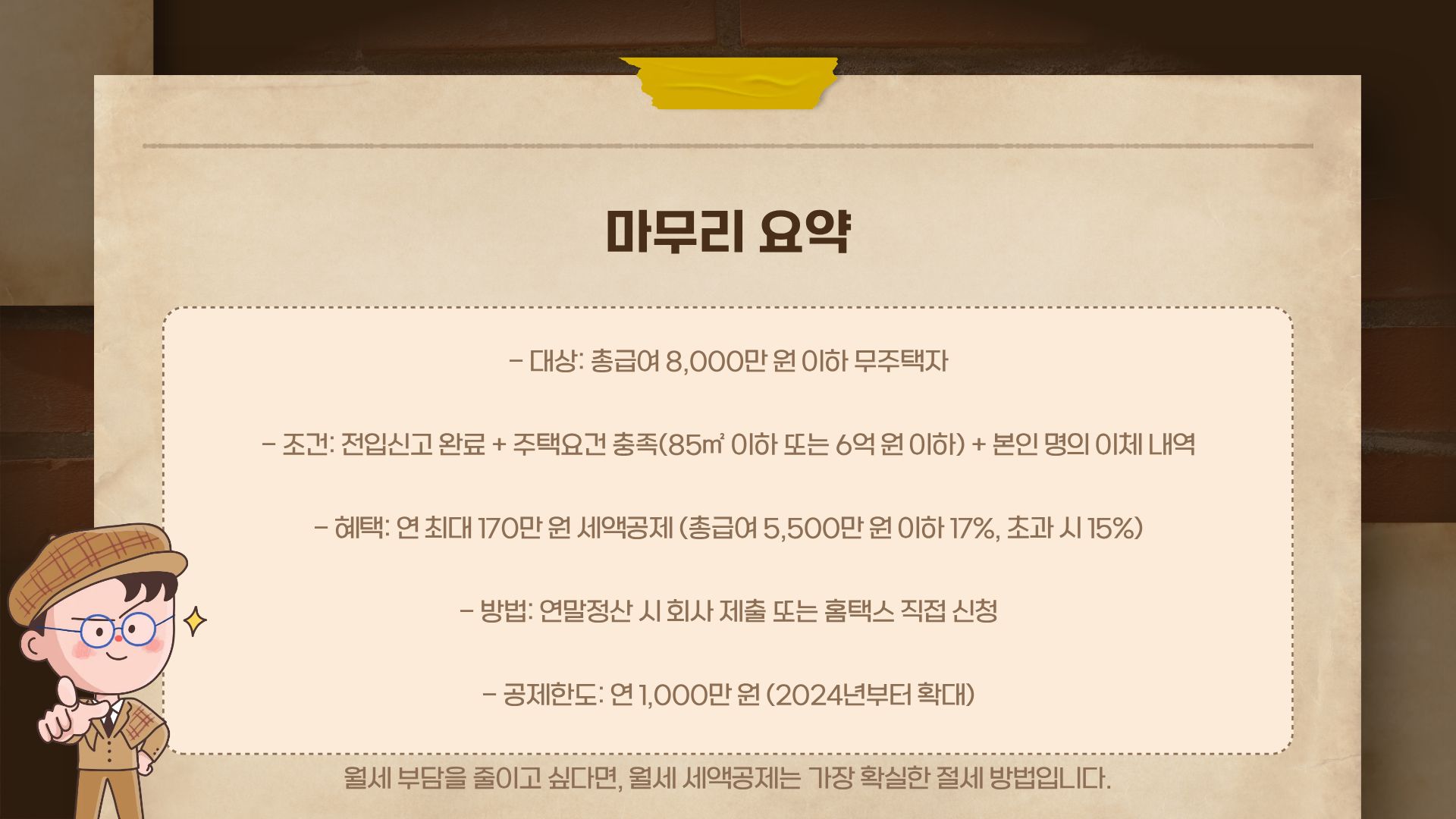📌 공제 대상 월세 한도: 연 1,000만 원