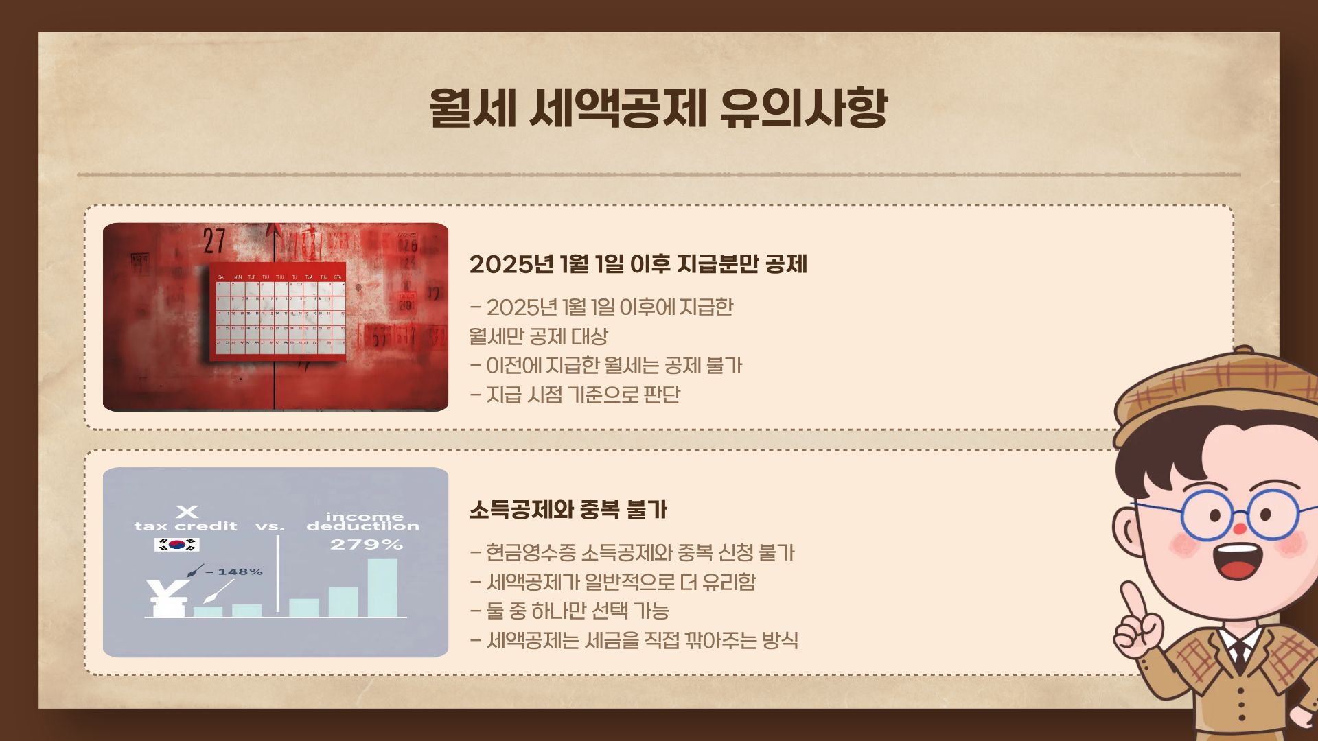 - 2025년 1월 1일 이후 지급한 월세만 공제 가능