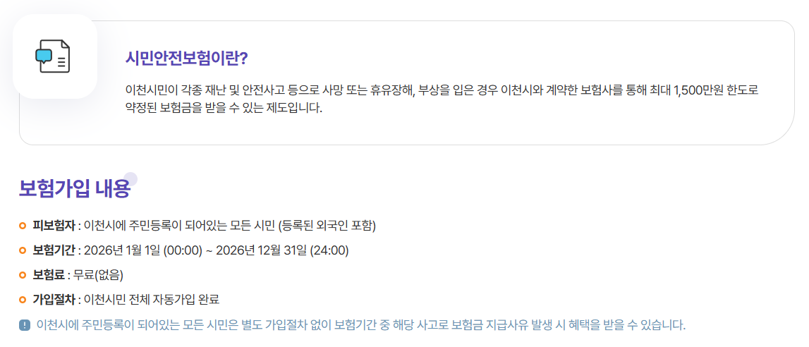 [2026] 이천시 시민안전보험 총정리 | 자동 가입·최대 1,500만 원 보장