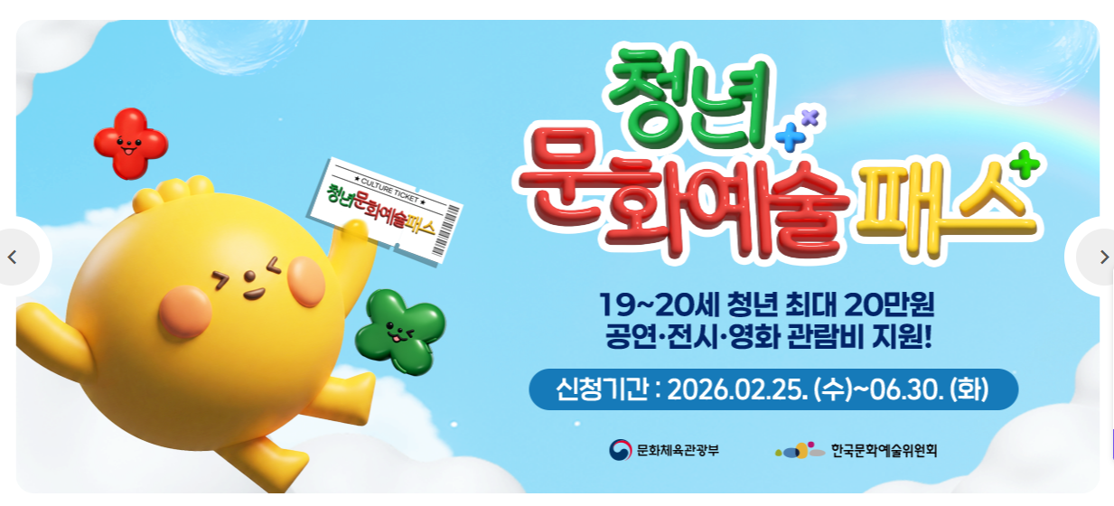 뮤지컬, 콘서트, 전시회, 그리고 최신 영화까지! 문화생활을 사랑하는 청년들을 위한 2026 청년문화예술패스가 돌아왔습니다. 올해는 지원 대상과 혜택이 더욱 커졌다고 하는데요. 예산 소진 전 신청해야 할 핵심 내용을 정리해 드립니다.