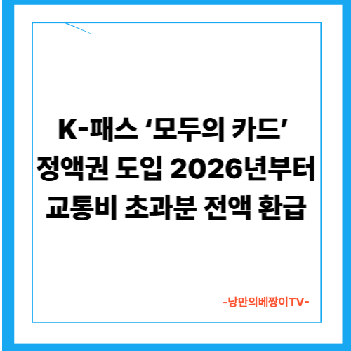 K-패스 ‘모두의 카드’ 정액권 도입|2026년부터 교통비 초과분 전액 환급