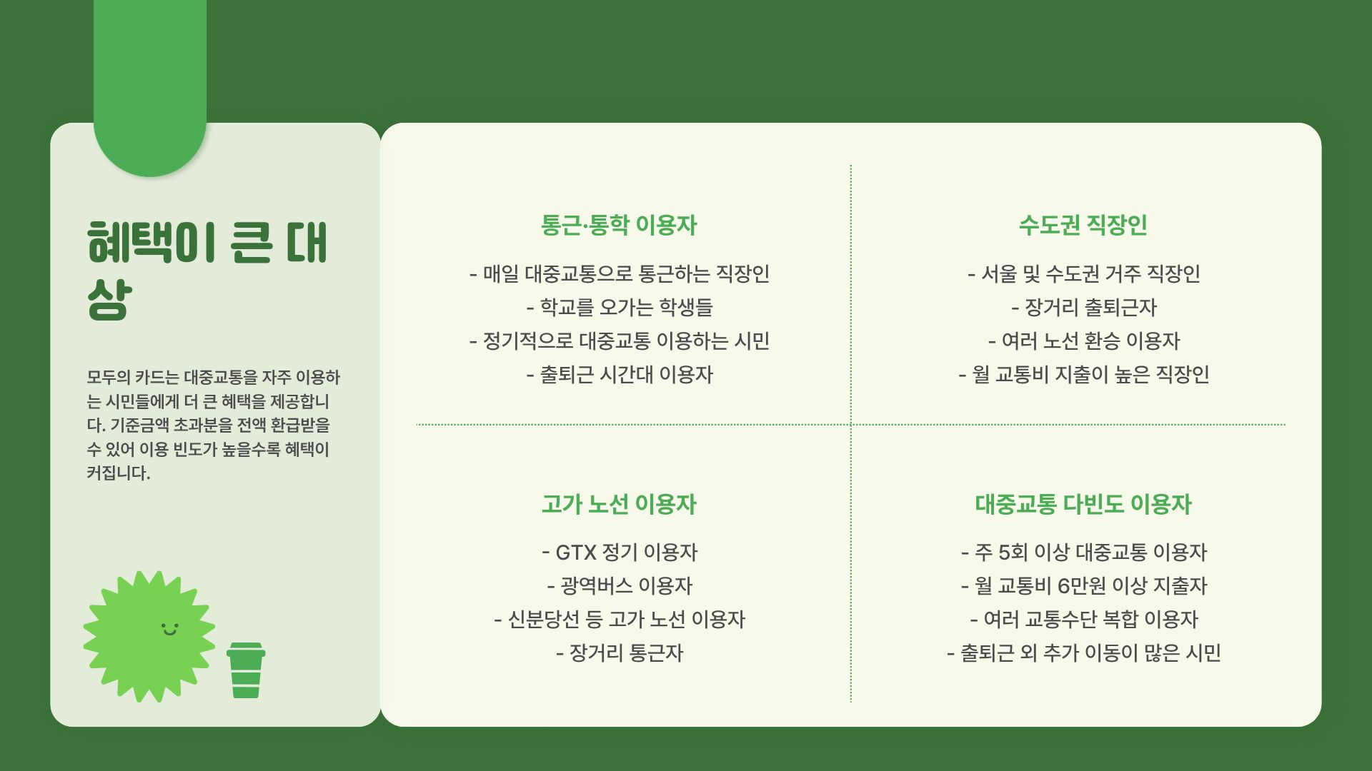 특히 수도권 직장인, GTX, 광역버스 등 고가 노선을 정기적으로 이용하는 사람들은 체감 혜택이 더 큽니다.